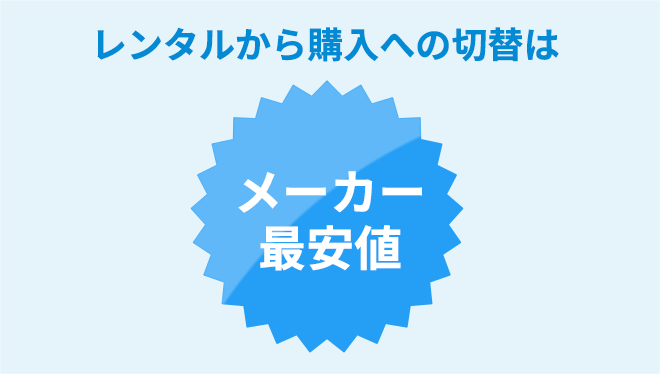 レンタルから購入に切り替えたいという人が沢山おりますが、常にメーカー最安値で提供中。大変安心いただけます