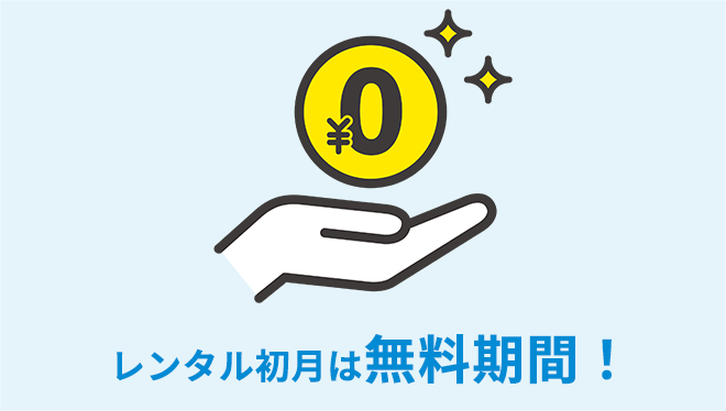 当社からレンタルをいただくとレンタル初月は無料となり、翌月以降からレンタルサービス開始となり大変お得です