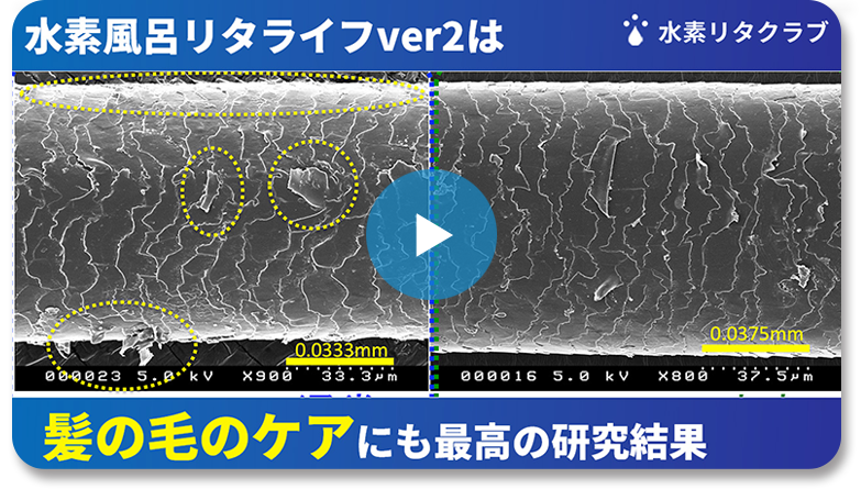 水素風呂リタライフが髪の毛のパサつき、枝毛、ツヤ低下、ドライヤー損傷からキューティクルを守る証拠