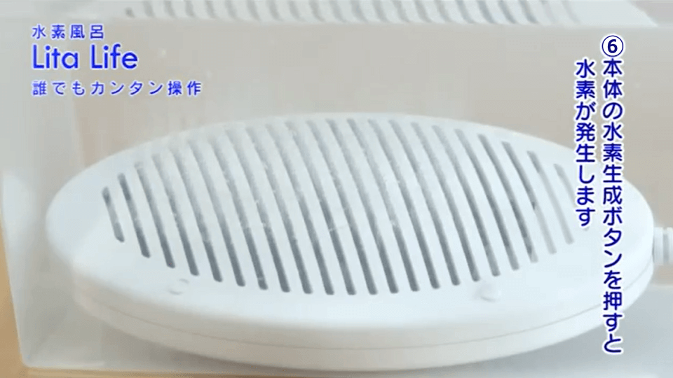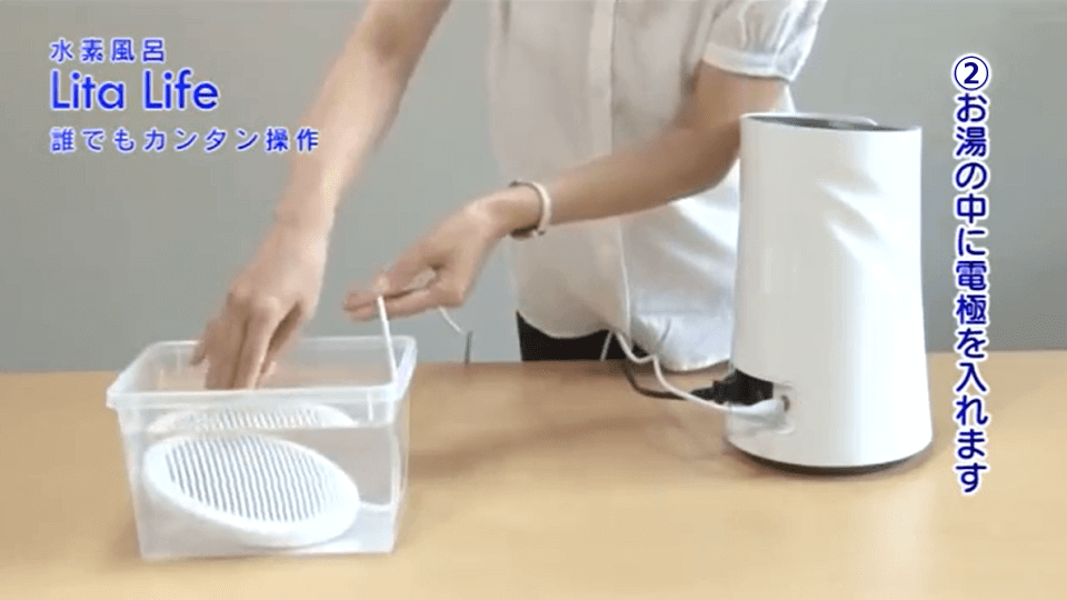 水を電気分解して水素を発生させるタイプの機器です。本体を浴室外に置き、その本体に接続された電極を浴槽に沈めて水素生成します。 | 毎日、家族全員で入浴しても1ヶ月の費用は4,400円のレンタル料+電気代60円程度(1日60分生成)のみ。 | 定期的に、電極洗浄のメンテナンスが必要になります。※リタライフは簡単。 |