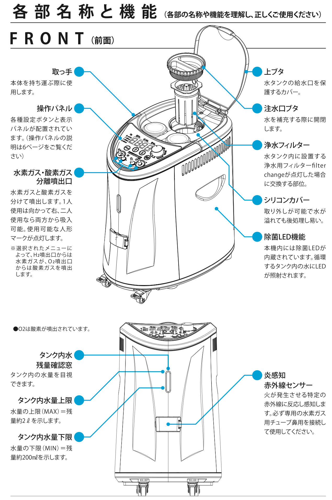 機械からは水素と酸素が別々にでる仕様のため、水素と酸素がミックスされるのはカニューレの先の人間の鼻の穴の中になります。この仕様によって機械内での水素の爆発事故が最大限起こらない設計になっており、このような仕様は他の機械にはない安全設計を採用しております^^